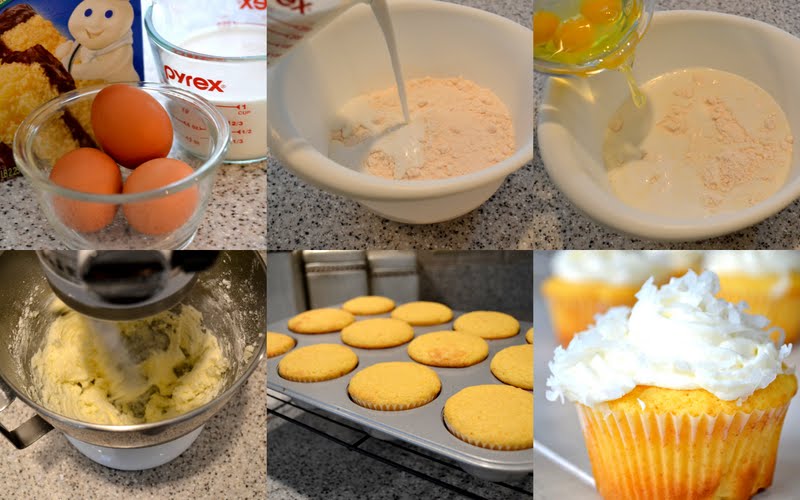 Mix cake mix with butter, eggs, key lime juice and coconut milk until blended. Â Pour in to lined cupcake tin â…” full. Â Bake for 20-24 minutes until cake tester comes out clean. Â Cool on wire rack.