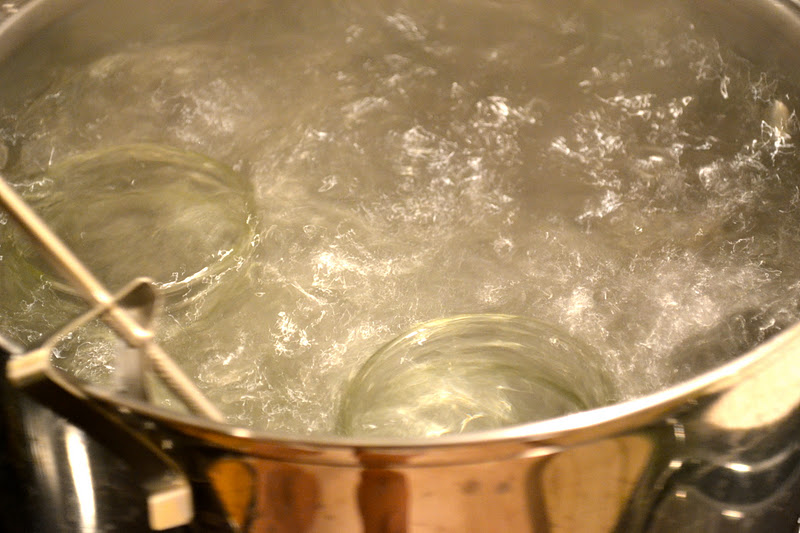| To can, sterilize jars in boiling water. |